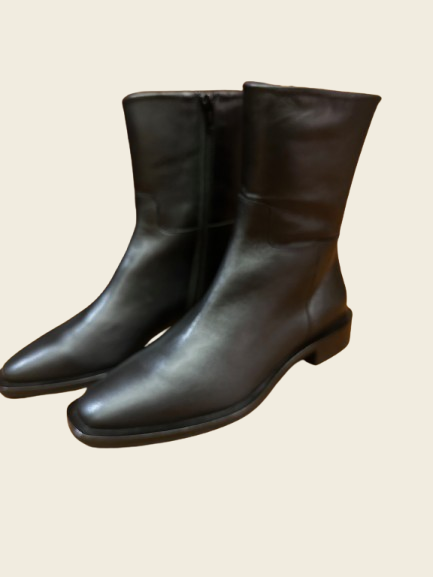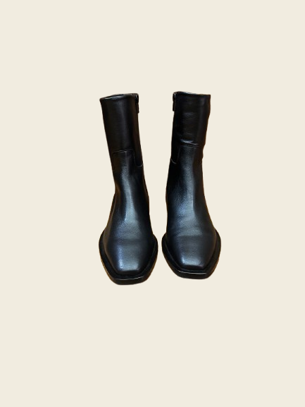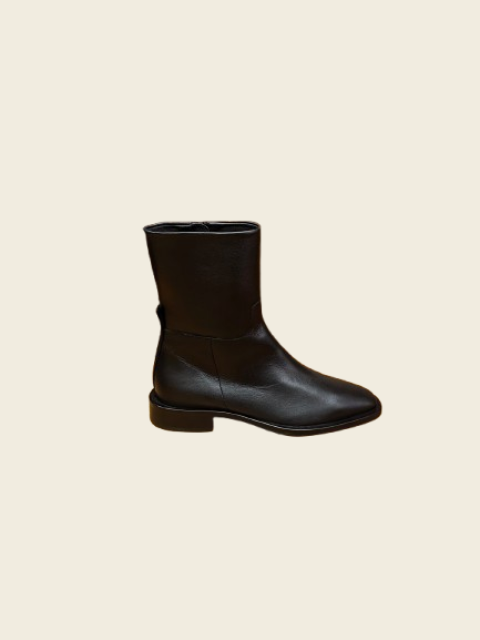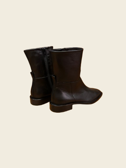 Botines de piel en Napa negros. Media caña con cremallera. Puntera cuadrada. Tacón bajo.
